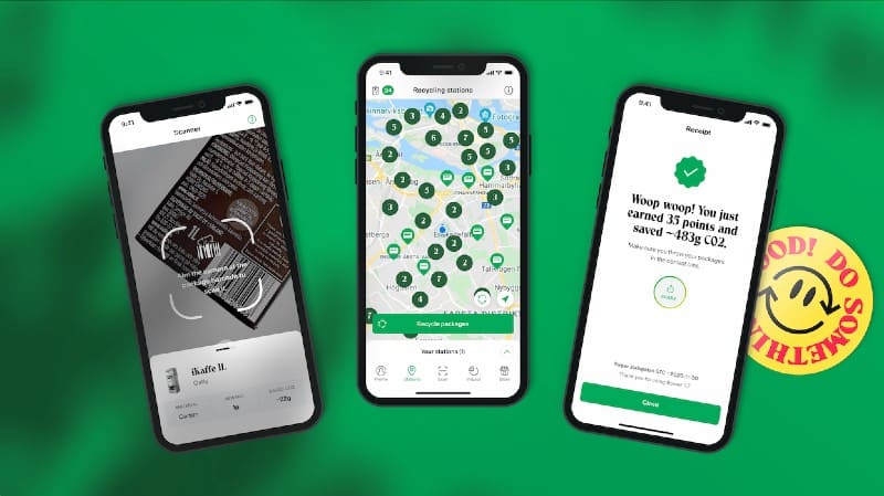 Når du er fremme ved din affaldscontainer vil du blive bedt om at bekræfte, at du er der, og at du har medbragt din emballage. Når du har gjort det og smidt din emballage i den rigtige beholder, får du pant-værdien for alt, hvad du har scannet derhjemme.